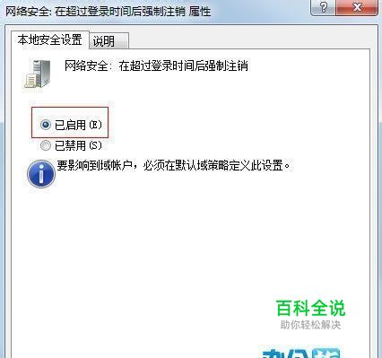 在右侧窗口找到网络安全:在超过登陆时间后强制注销这一项。