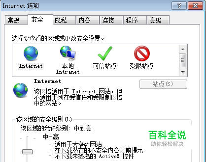 如果你设置浏览网页的安全级别过高的话,同样会导致网页内容加载不全的现象,因为IE浏览器自动把它过滤掉了。这时候我们只需把安全级别设置为中即可。