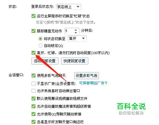 在弹出的新菜单中,在“自动回复”一栏处打勾就可以了。