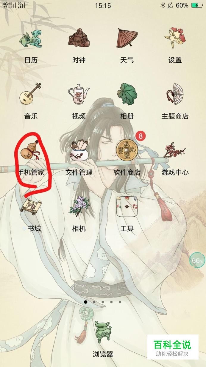 首先打开手机,进入手机桌面,找到OPPO手机自带的手机管家,然后点击进入手机管家,进行设置。