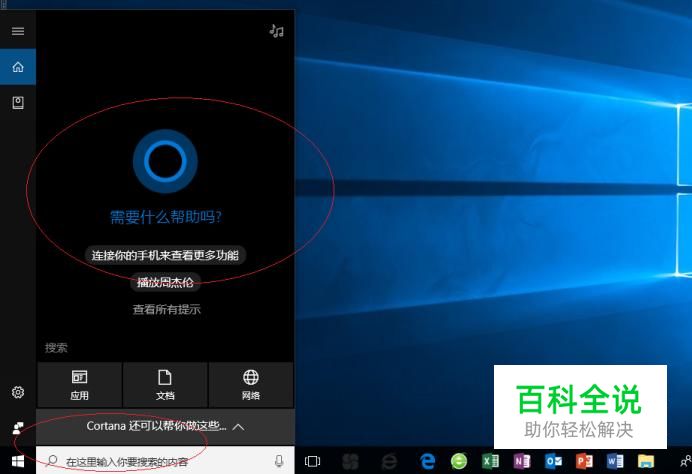 启动Windows 10操作系统,如图所示。点击任务栏搜索框,开始使用Cortana(小娜)智能语音助理。