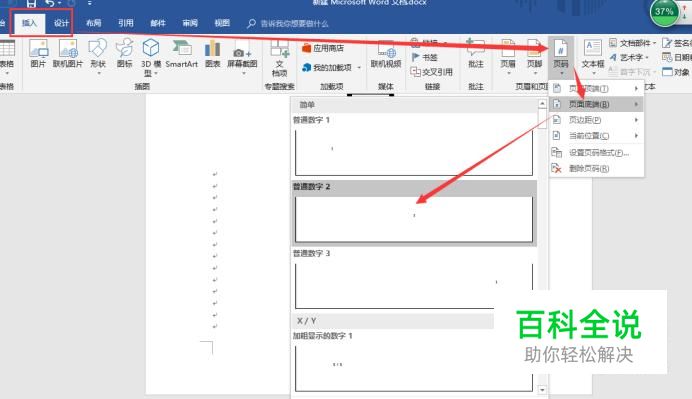 点击“插入”,“页码”,“页码底端”,“普通数字2”。