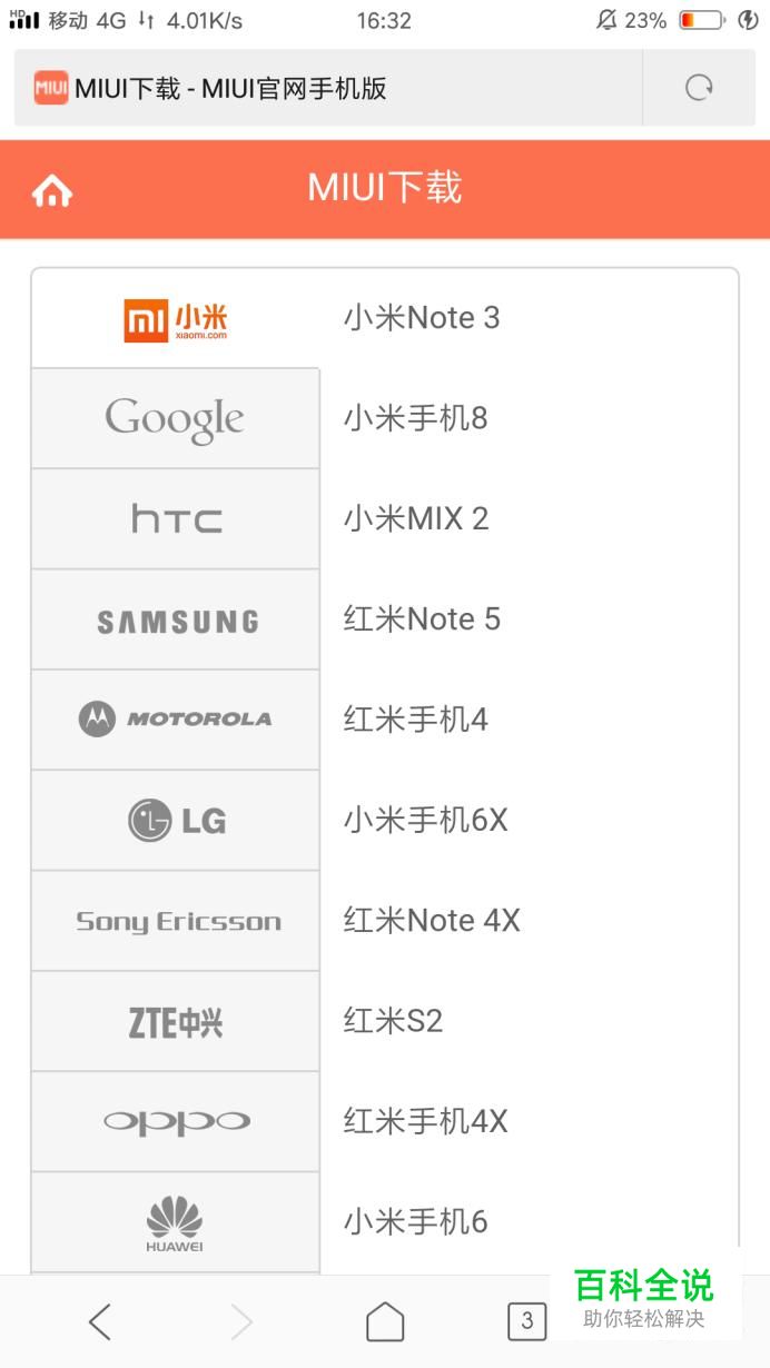先在左侧找到自己的手机品牌,如果找不到就是官方没有,只能找民间大神要刷机包了。