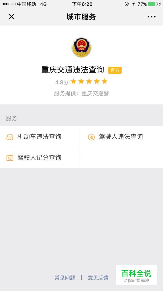 选择你的城市,向下滑找到车辆服务,点击交通违法