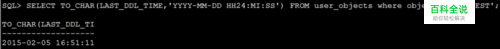 查询test表DDL操作的最后时间的语句: select TO_CHAR(LAST_DDL_TIME,'YYYY-MM-DD HH24:MI:SS') FROM user_objects where object_name='TEST';