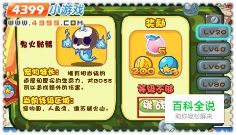 前提是要先完成捕捉的任务和音速犬的挑战哦~!要特别提醒大家的是,鬼火骷髅的等级不够,无法领取奖励,但是可以照常挑战的哦,你可以用别的宠物挑战他~