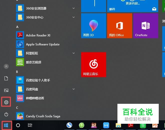 一般电脑连接的打印机连接完全没有问题的话,打印不了只有可能是我们设置的问题了,我们点击电脑左下角的微软按钮,弹出的界面,我们点击设置;
