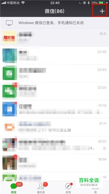 首先点击屏幕右上方的加号键,如下图所示。