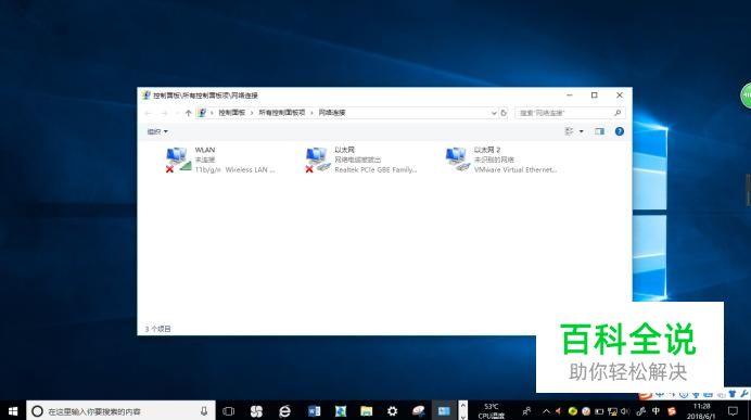 弹出"网络连接"对话框,如图所示。鼠标右击"以太网"图标,弹出快捷菜单选择"属性"项。