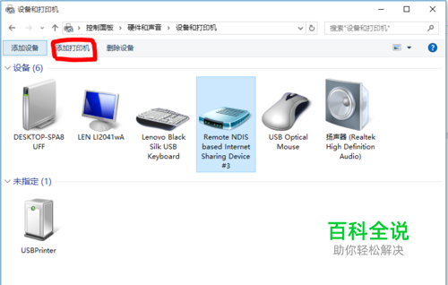 让映美打印机接上电源,然后把打印机上的USB线连接到电脑。可以在控制面板里的设备和打印机中看到一个未指定的“USBPrinter”的设备,先不用管它。
