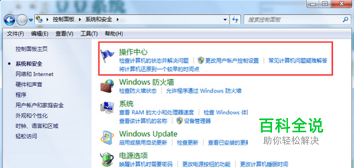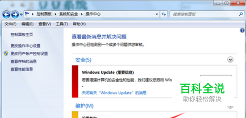 首先点击win7系统中的“开始——控制面板——系统和安全——操作中心”的选项;