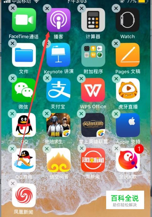 然后对着一个软件长按两秒,你会看到每一个软件上都有了叉号,如下图