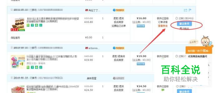 确认收货 登陆淘宝网之后,对已收货商品进行评价,点击【确认收货】按钮,如下图所示: