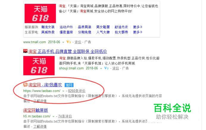 淘宝网 首先在浏览器中输入【淘宝】,点击具有官网标志的链接进入淘宝网,如下图所示: