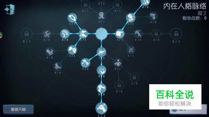 如果新手力求自保的话,就可以走冷静和执着这两条线。这两条线能够使得园丁在逃脱上更有优势。