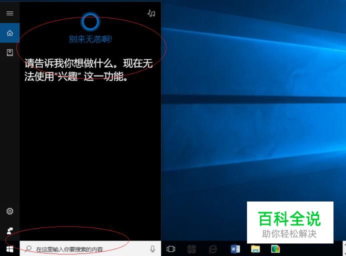 启动Windows 10操作系统,如图所示。点击任务栏搜索框,开始使用Cortana(小娜)智能语音助理。