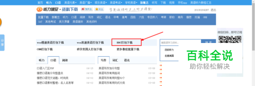 进入到“资料下载”的页面后,里面有各种听力、阅读的内容,选择你要的下载的内容并打开。比如你要将BBC打包下载,你可以单击打开它