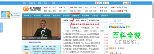 首先,你要进入到英语听力课堂的官网,在箭头所指出找到“资料下载”,打开它。