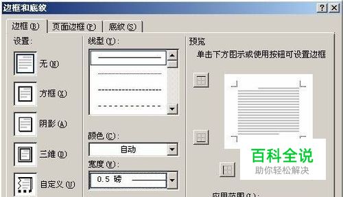 选择边框的类别、线型、颜色和线条宽度。这时在预览窗口中可以看到添加边框的效果。