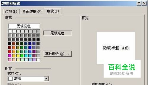 在“填充”颜色选项区域中选择底纹颜色,在“图案”选项区“式样”下拉列表框中选择底纹图案,接着在“颜色”下拉列表框中选择底纹图案中的点或线的颜色。 最后单击“确定”按钮完成对文档边框和底纹的设置。