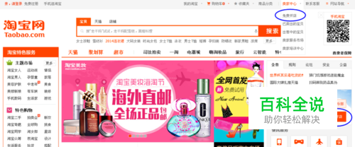 二、 淘宝开店入口: 1、淘宝网首页吊顶的卖家中心或免费开店 2、淘宝网首页未登陆状态或半登陆状态下右侧名片区的免费开店