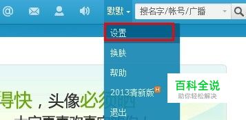 打开腾讯微博并点击右上角个人微博名称处会弹出设置菜单并点击设置