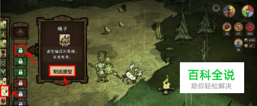 建设一本科技后可以解锁一些基础用品: 点击 合成栏,然后选择第一项 绳圈,消耗3个草合成1个绳圈。