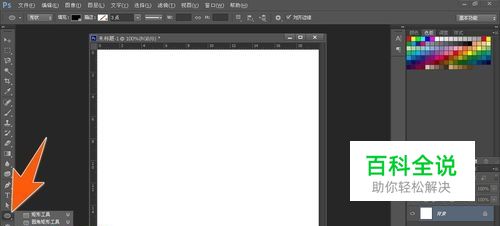 先打开Photoshop软件,然后新建一个PS文件,再在左侧的工具栏里面,点击椭圆形工具,看下图箭头所指处。