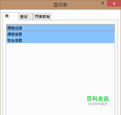 系统会弹出提示,进行表的添加,选中要建立关系的表,点击添加。提示不会自动关闭,你需要再点击“关闭”按钮来关掉它。