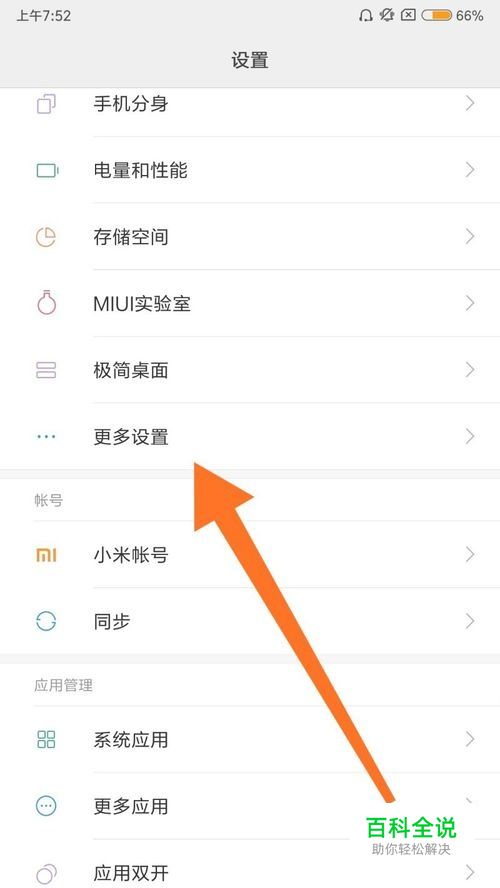 然后找到“更多设置”选项,点击进入。