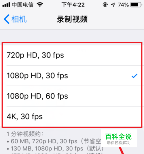 系统预设了四种录制视频的清晰度,最高可以录制4K分辨率的视频。我们根据自己的情况来选择。清晰度越高,占用的内存越大。