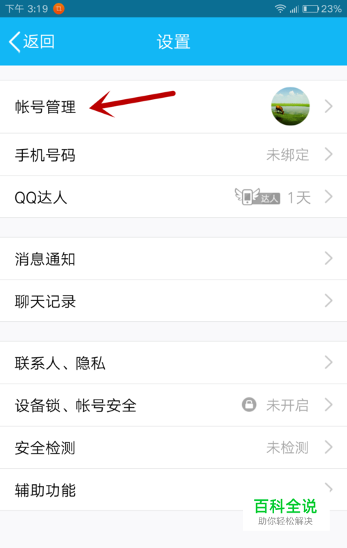 在设置任务界面上,选择账号管理。