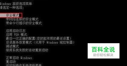 开机或重启时,连续点击电脑F8键盘,进入安全模式,点击安全模式。