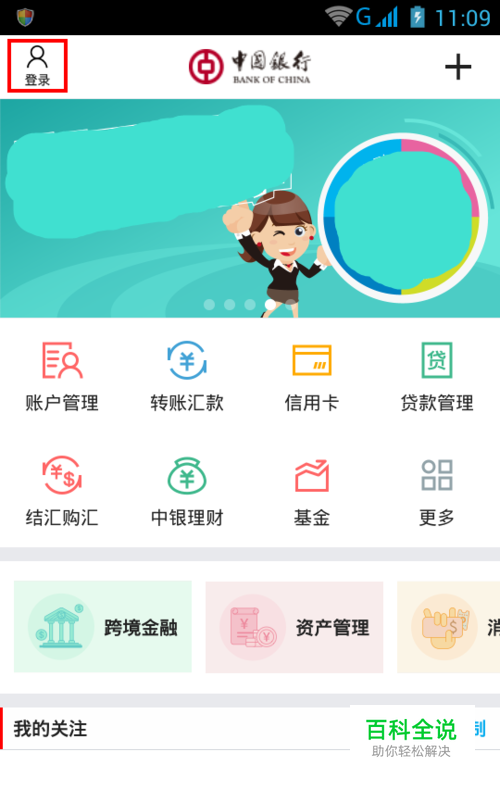 打开中国银行手机客户端(3.1.0版本),点击软件窗口左上角的“登陆”按钮,进入登陆页面。