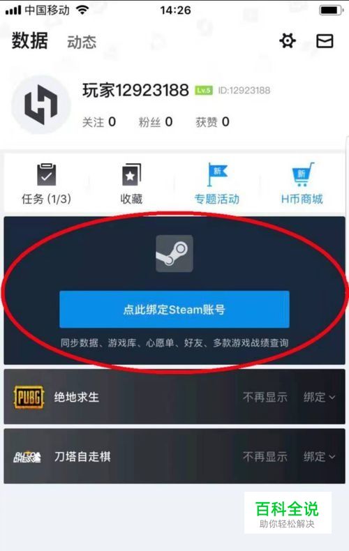 注册小黑盒账号并登录,点击首页底部“我”进入个人主页,点击页面中部“点此绑定Steam账号”进入绑定页面。