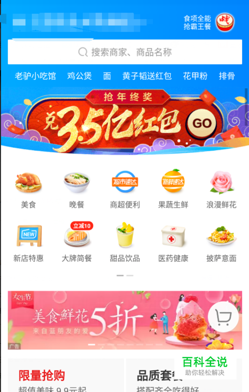 选择你要购买的商品,然后点击左下角付款金额旁边的饿了么图标。