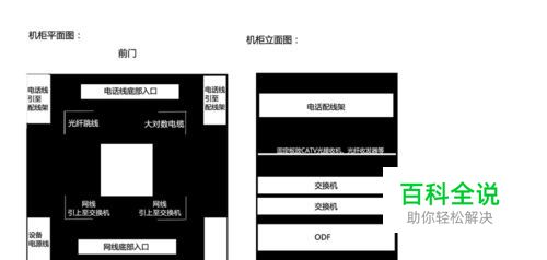 基本思路是: 线路:电话线位于前,网线位于后,光缆中间。 设备:ODF在下,交换机在中,电话配线架在上 示意图如下: