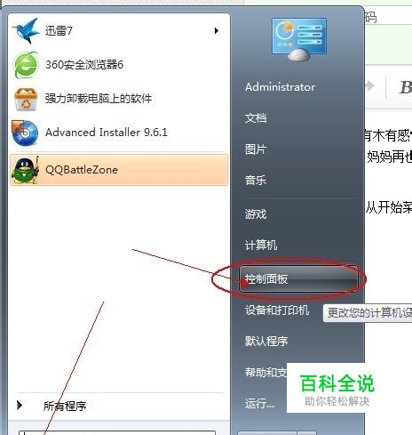 从开始菜单进入控制面板,看图: