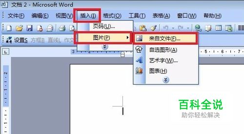 启动Word,点击菜单上的插入--图片--来自文件。