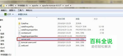 首先我们需要找到Tomcat目录下面的Conf文件夹。找到server.xml文件,将其打开。