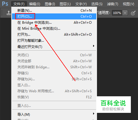 在photoshop上方的菜单上执行“文件”-“打开”命令。