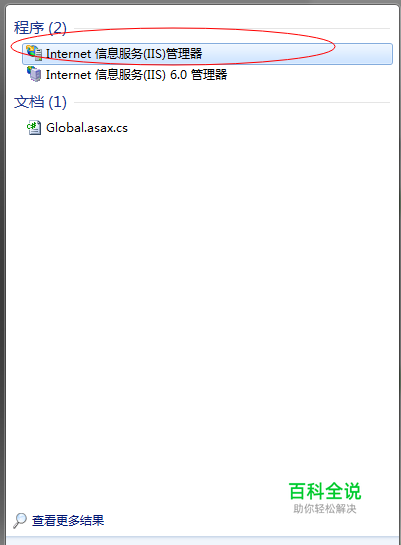 开始菜单----搜索框---输入IIS,在结果中,找到IIS快捷方式。