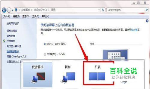 现在如果你想在你的电脑上面操作,其他人看投影仪,那么我们就可以选择“复制”也就是第二个。