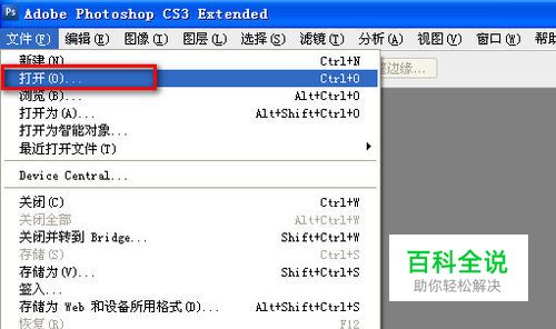 打开PS,并从菜单栏选择::文件--打开