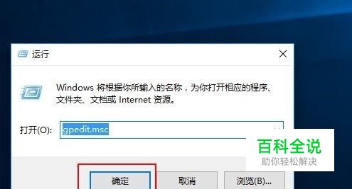 在打开的运行窗口中输入“gpedit.msc”,按回车键或点击“确定”,即打开“本地组策略编辑器”