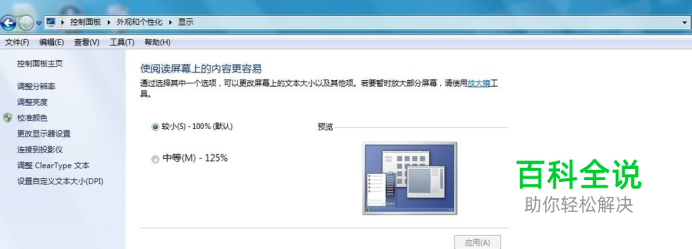 点击“放大或缩小文本或是其他项目”讲比例调到100%然后应用即可,如果到这里你的桌面图标还是没有变回来,(我之前就是遇到这种情况)那我们就