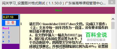 大一新生都会学习计算机基础这门课程,其中包含上机考试,需要测试word,excel等软件的操作,平时却没有相应的解析步骤可以练习,下面小编用题库中的一道例题,分享一下2010版word如何设置图片布局格式。