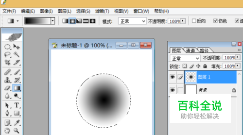 制作粒子笔刷:创建一个新文件,在新的图层中绘制一个选区,利用渐变工具进行黑白填充。如图所示: