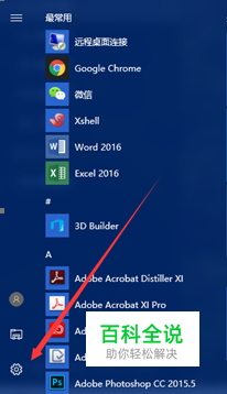 1、打开开始菜单,在左下角有一个不起眼的齿轮图标的按钮,点一下它。