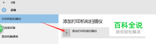 3、接下来会打开一个页面,最上方有一个添加打印机和扫描仪的按钮。点击进行打印机添加。